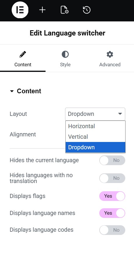 - Alignment: Choose the position of the language switcher (left, center, or right).