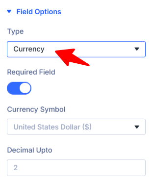A Currency Field is a special type of form field designed specifically for collecting money-related input accurately. Instead of letting users type anything (like text, symbols, or wrong values), a currency field ensures that the input is always in a proper format.