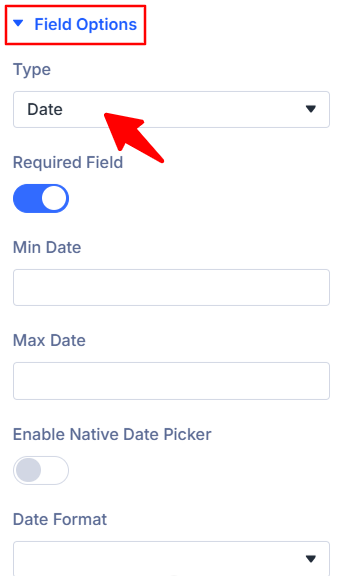 2025-06-06restricts users from choosing a date beyond this point. - Enable Native Date Picker: Turn this on to use the default date picker of the user’s device or browser.