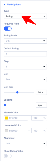 - Default Rating: Pre-select an initial value that appears when the form loads.