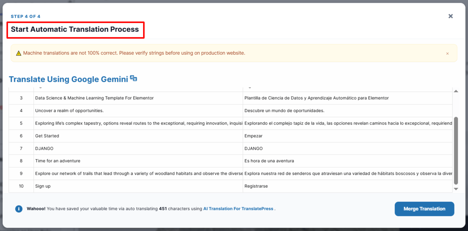 If you’re using AI Translation for TranslatePress to translate your web pages automatically, you can integrate Gemini AI for faster translation results.
