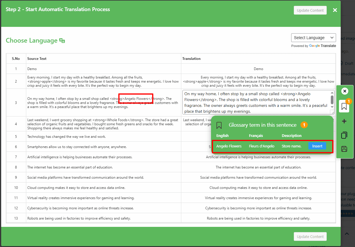 Once you add your glossary, AutoPoly automatically applies your terms during bulk translations — helping keep your website’s content accurate and consistent.