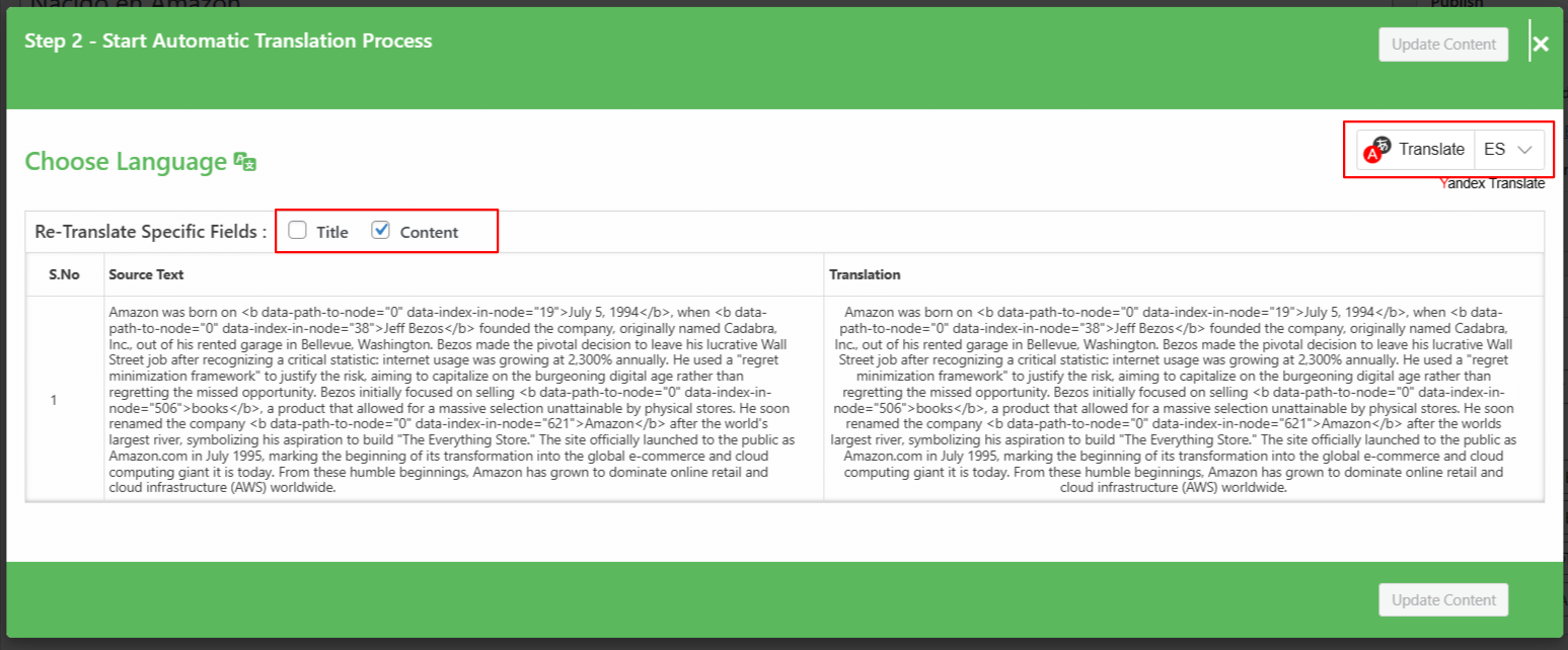 For example, if your website page is in English and you add a new line or fix a sentence, the translated version of the page does not update automatically, you have to make those changes in translated pages manually. However, Autopoly shows a Retranslate button on the translated page. You simply click it, and the new or changed content is translated for you.