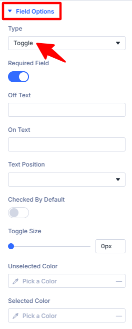 - Checked By Default: Enable this option if you want the toggle to be turned on by default when the form loads.