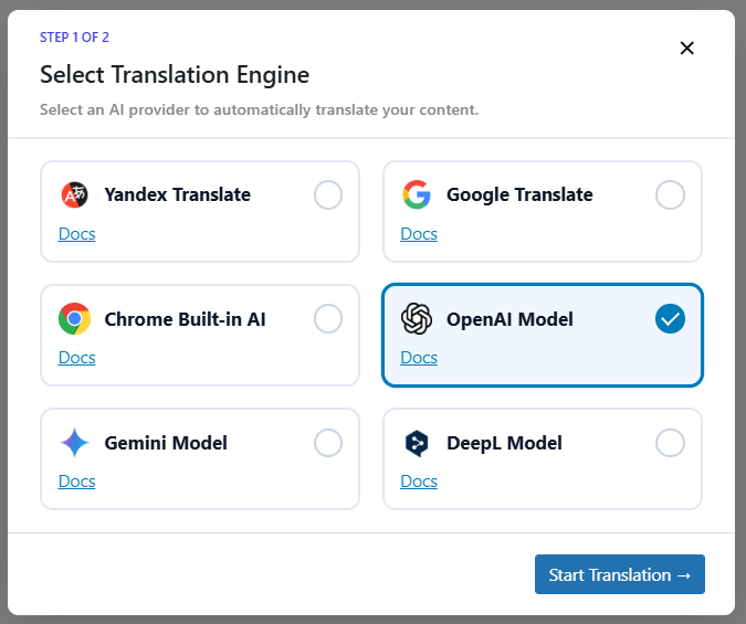 - Now, choose OpenAI as a translation provider.
